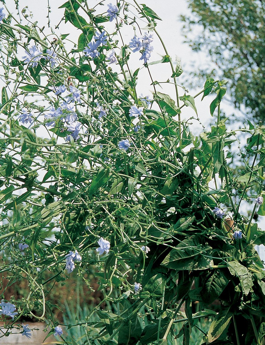 Aunque no se incluyen entre las verduras de ensalada examinadas en este volumen, ya que se cultivan para la producción de raíces, nos referimos a ellas de forma breve para recordar una variedad muy conocida y apreciada que, con cultivo forzado, produce hojas muy sabrosas para el consumo en ensalada o con vinagreta. Se trata de la achicoria belga, witloof o de Bruselas.