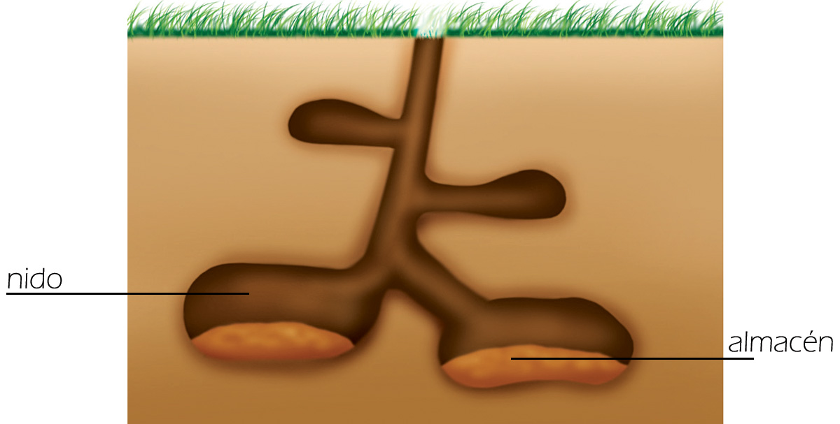 La madriguera de las ardillas terrestres da a un túnel que conduce a distintas habitaciones. Las más importantes son el nido y el almacén