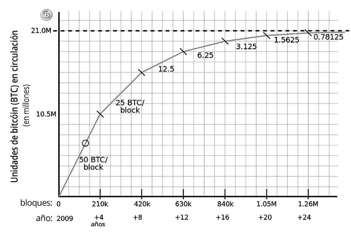 A principios de 2009, la recompensa inicial por cerrar un bloque de Bitcoin era de 50 bitcoines. Desde entonces, cada 210.000 bloques, que corresponde a unos cuatro años, se produce un halving, que significa que la retribución se divide entre dos, y así progresivamente. Por ejemplo, desde mayo de 2020, la recompensa por cerrar un bloque se reduce a 6,25 bitcoines (BTC) y, tras cuatro años, en 2024, será de solo 3,125 BTC. Esta política retributiva, que se incluye en el protocolo de Bitcoin lanzado por Satoshi Nakamoto en 2008, resulta de vital importancia para entender lo disruptiva que es esta tecnología, también desde un punto de vista económico.