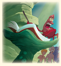 Era el gran día de Sebastián. Como compositor de la corte del rey Tritón, había estado trabajando muy duro en una nueva pieza musical y esa noche iba a dirigir la orquesta real mientras tocaba su canción delante de todo el reino por primera vez. Por fin iba a ser apreciado su gran talento, pensó Sebastián.