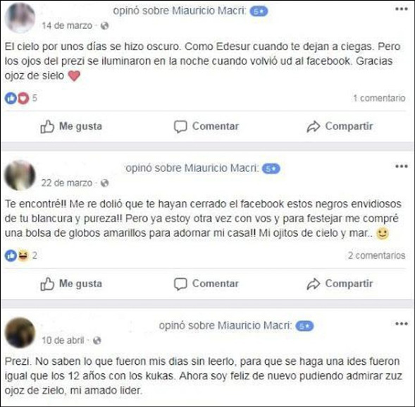 Figura 5. Comentarios en el perfil de Miauricio Macri.
