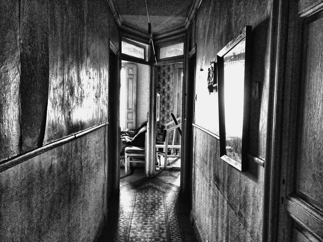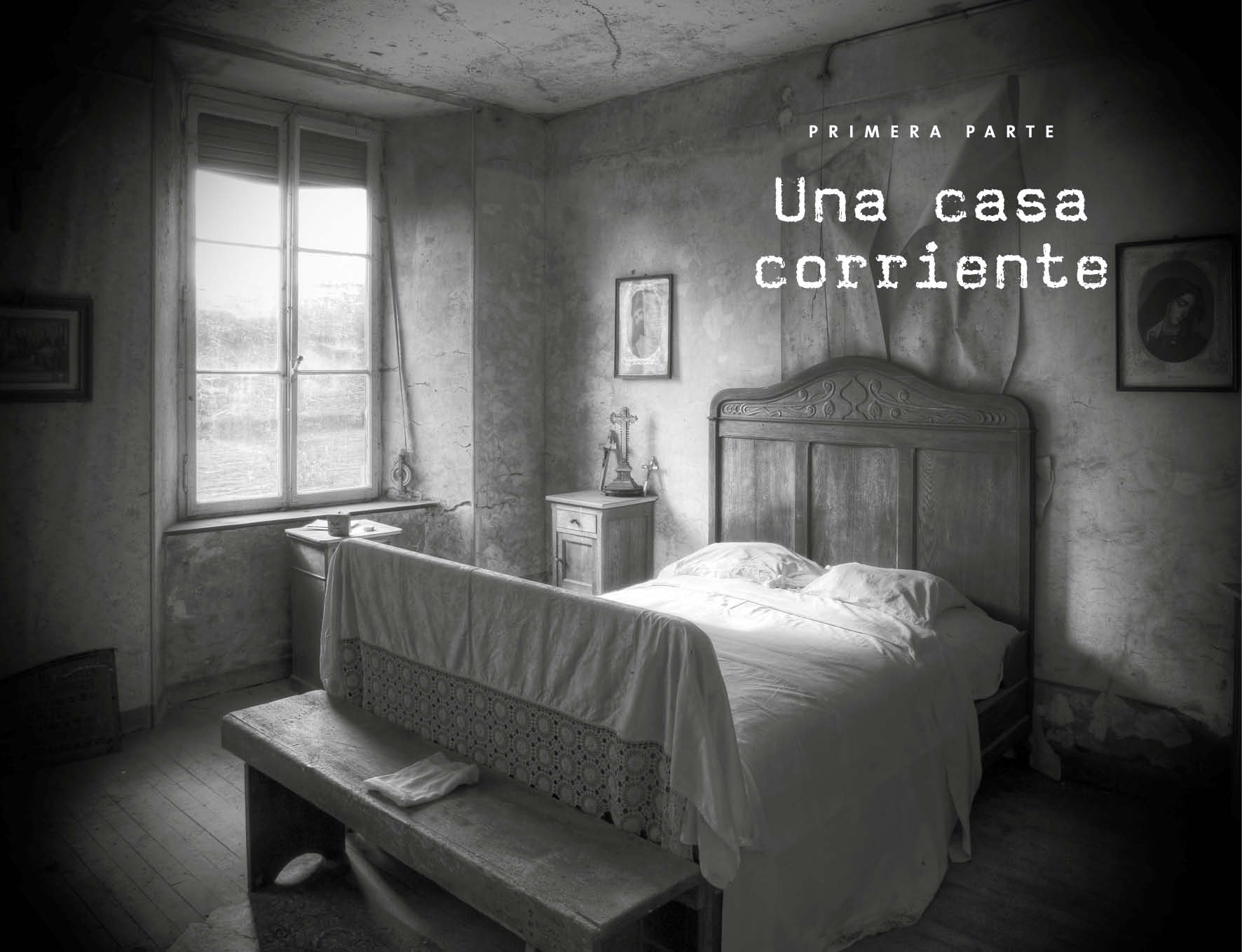 Me recibió sonriente y me invitó a entrar. Al hacerlo, me topé con una casa que estaba prácticamente como debía encontrarse cuando sucedieron los crímenes. Era antigua, con suelo embaldosado y un papel en las paredes que en algunas zonas colgaba medio arrancado, como en una película de terror. En otras, el papel y la pintura estaban tan deteriorados que se veía incluso el hormigón poroso de la estructura. Del techo colgaban bombillas desnudas y un pasillo flaco y larguirucho como un galgo abandonado daba acceso a las diferentes estancias. Las puertas, con la pintura agujereada y decadente, parecían también de la construcción original. Javier debió adivinar en mi mirada que me parecía increíble que alguien pudiera vivir allí, ya no por la historia truculenta, sino por el estado en que se encontraba cada rincón.