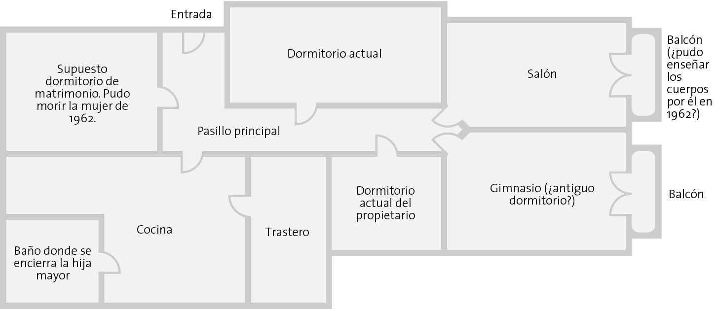 Javier nos conducirá también a viviendas en las que los testigos prefieren hacer oídos sordos a lo que tienen delante, que escogen no darse por enterados, aunque el asunto se ponga feo. Son emplazamientos que parecen llamar a determinados perfiles psicológicos, unos perfiles muy peculiares. Tanto que solo ellos podrían vivir en esos sitios marcados por el horror y la muerte. Otras veces se trata de personas que, cuando se trasladaron, desconocían por completo la historia de su nuevo hogar y ha sido después, una vez instaladas, cuando han comprendido que algo no iba bien. Y al realizar una pequeña búsqueda en internet para otros menesteres, se han topado con la historia terrible que arrastra su nueva casa.