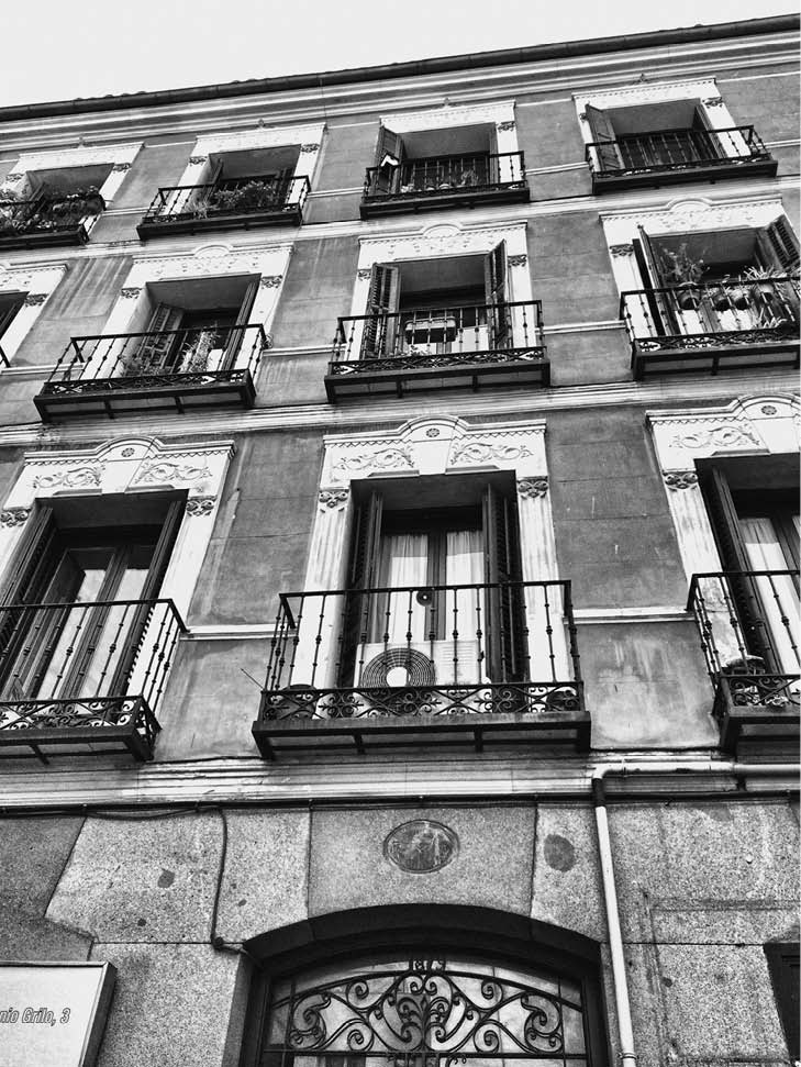 Miré a un lado y a otro y crucé rápidamente. Al doblar la esquina me topé con el famoso edificio, con fachada de piedra y cuatro balcones ocupando cada uno de los tres pisos. Del primero surgía una planta seca que se extendía hasta casi enredarse con los cables de la luz que cruzaban por el frente.