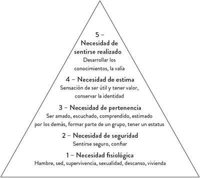 Abraham Maslow, mencionado anteriormente en las páginas dedicadas al enfoque humanista, clasifica nuestras necesidades del siguiente modo:21