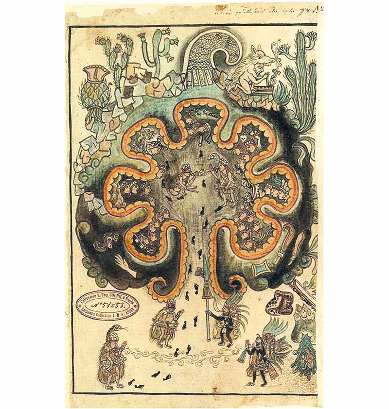 8 Los principales documentos gráficos que describen la peregrinación mexica son los siguientes: Tira de la Peregrinación (Códice Boturini); María Castañeda de la Paz, Pintura de la peregrinación de los culhuaque-mexitin (Mapa de Sigüenza), México, Conaculta/INAH/El Colegio Mexiquense, 2006; Códice Aubin; Códice Azcatitlan.