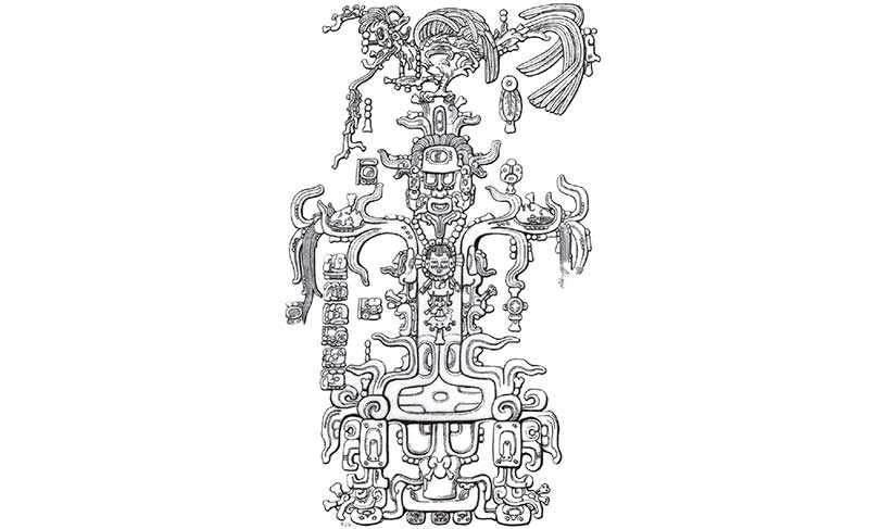 FIGURA 10. Representación del árbol cósmico en el centro del tablero de la Cruz Foliada de Palenque.