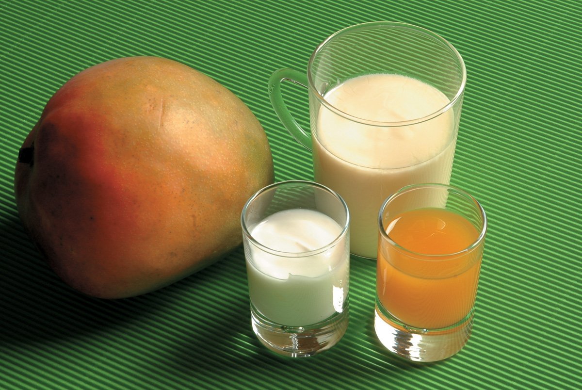 También se puede preparar esta bebida con pulpa de mango, que se mete en la batidora junto con la mitad del yogur.