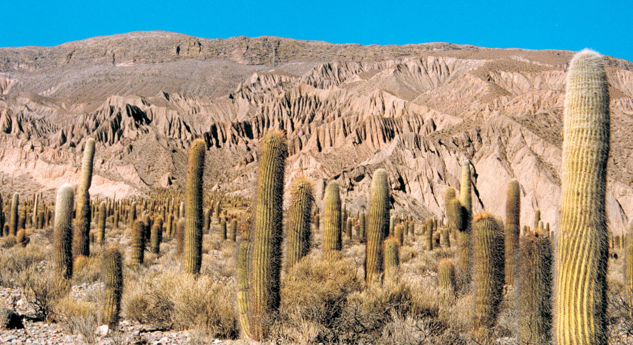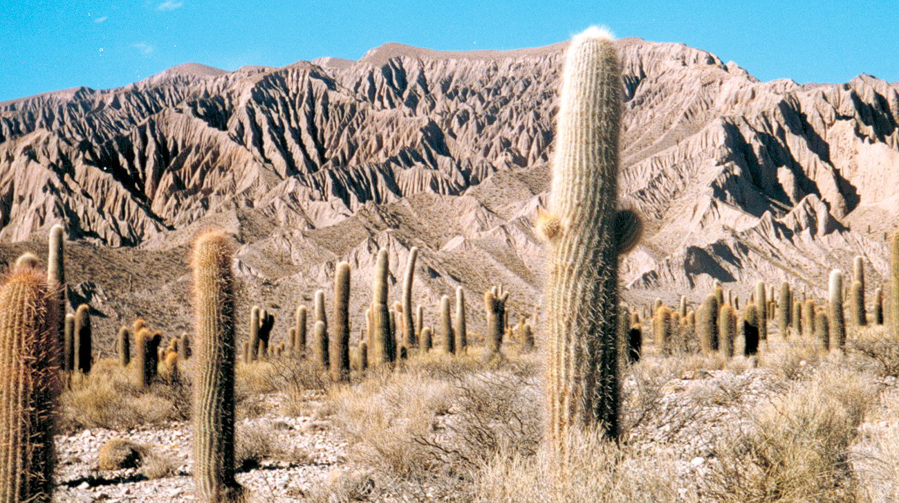 Cactus columnares en su hábitat natural en la Quebrada de Humahuaca (Salta, Argentina). (Fotografía de Manuel Rubio Liria)