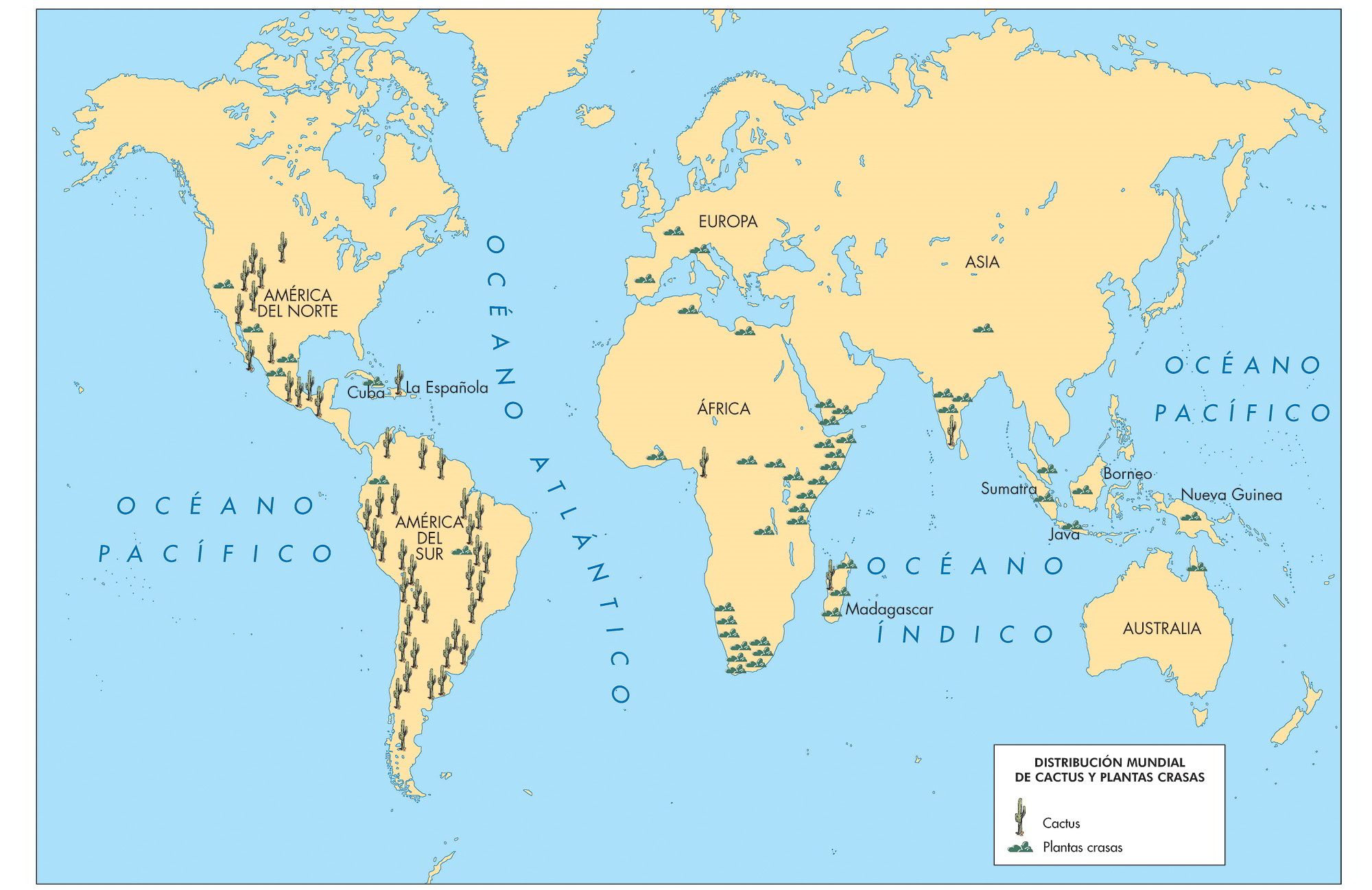 Distribución de las familias de cactus y plantas crasas en el mundo |