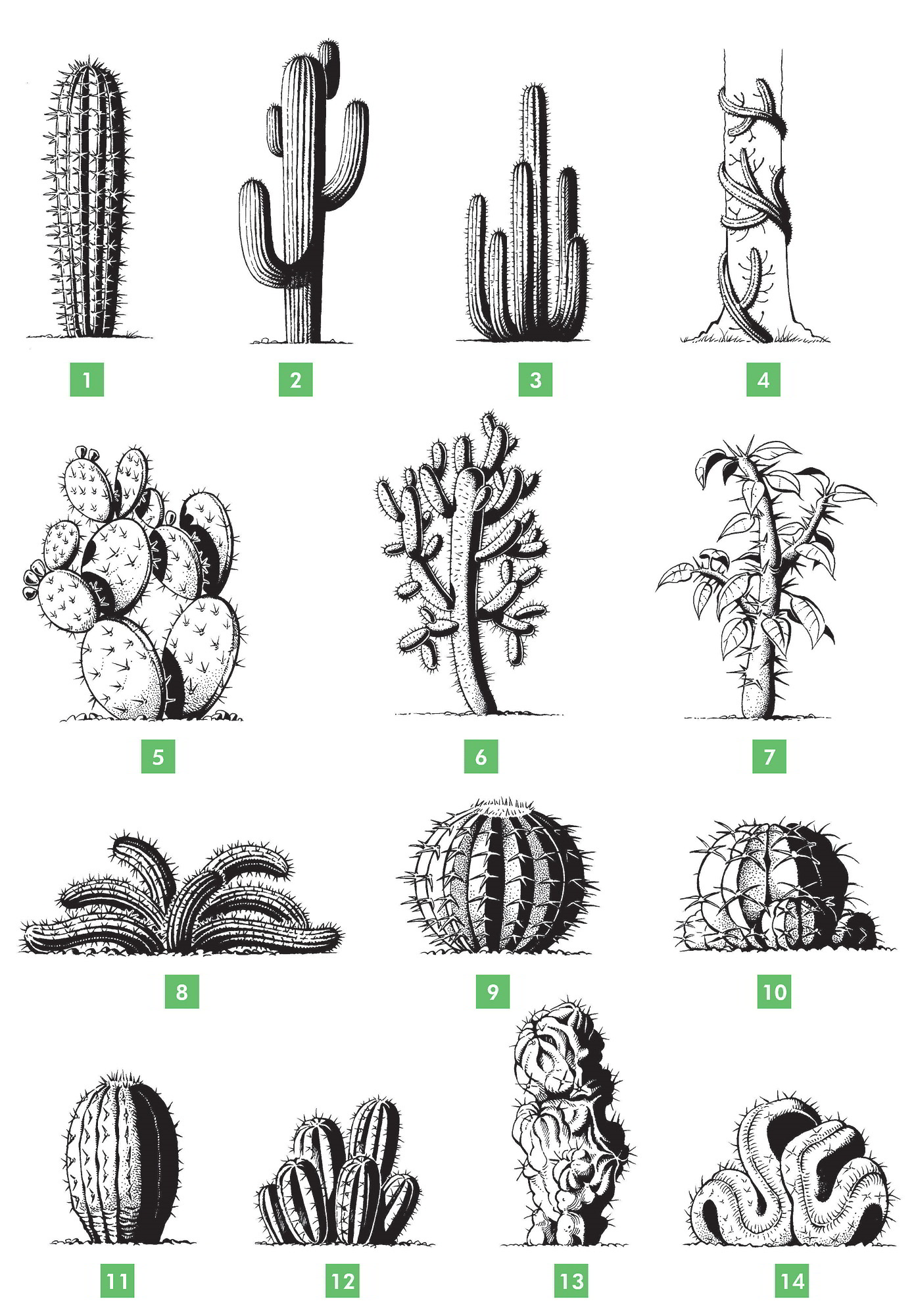 Se pueden establecer diferentes tipos de cactus según su silueta, y esta es también una forma sencilla de empezar a conocerlos.