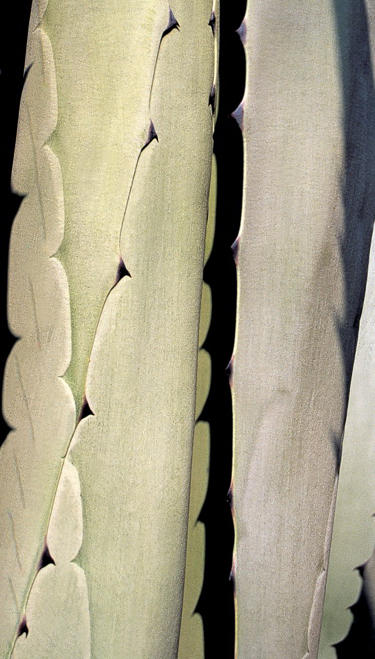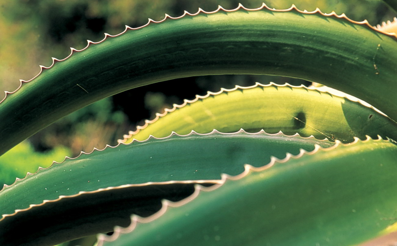 Espinas verdaderas en hojas de Agave