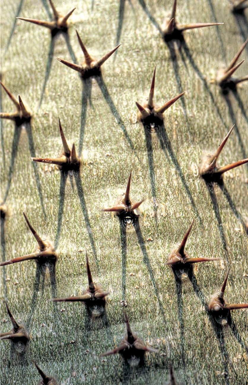 Las espinas, además de servir a las plantas para protegerse de los depredadores, también las protegen de la intensa luz solar. Las largas espinas blancas en forma de pelo que poseen algunas especies como Espostoa, Cephalocereus u Oreocereus les proporcionan sombra y evitan que las radiaciones solares impacten con toda su energía. Además, también tienen una función importante al condensar el agua del rocío o de la niebla.