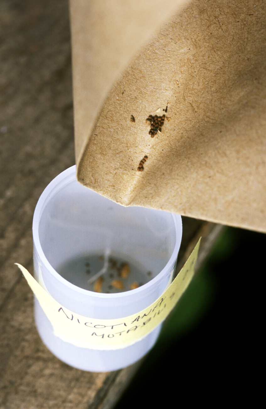 Cosecha y conservación en botes de semillas de Nicotiana mutabilis. (©Biosphoto/Swithinbank John/GPL)