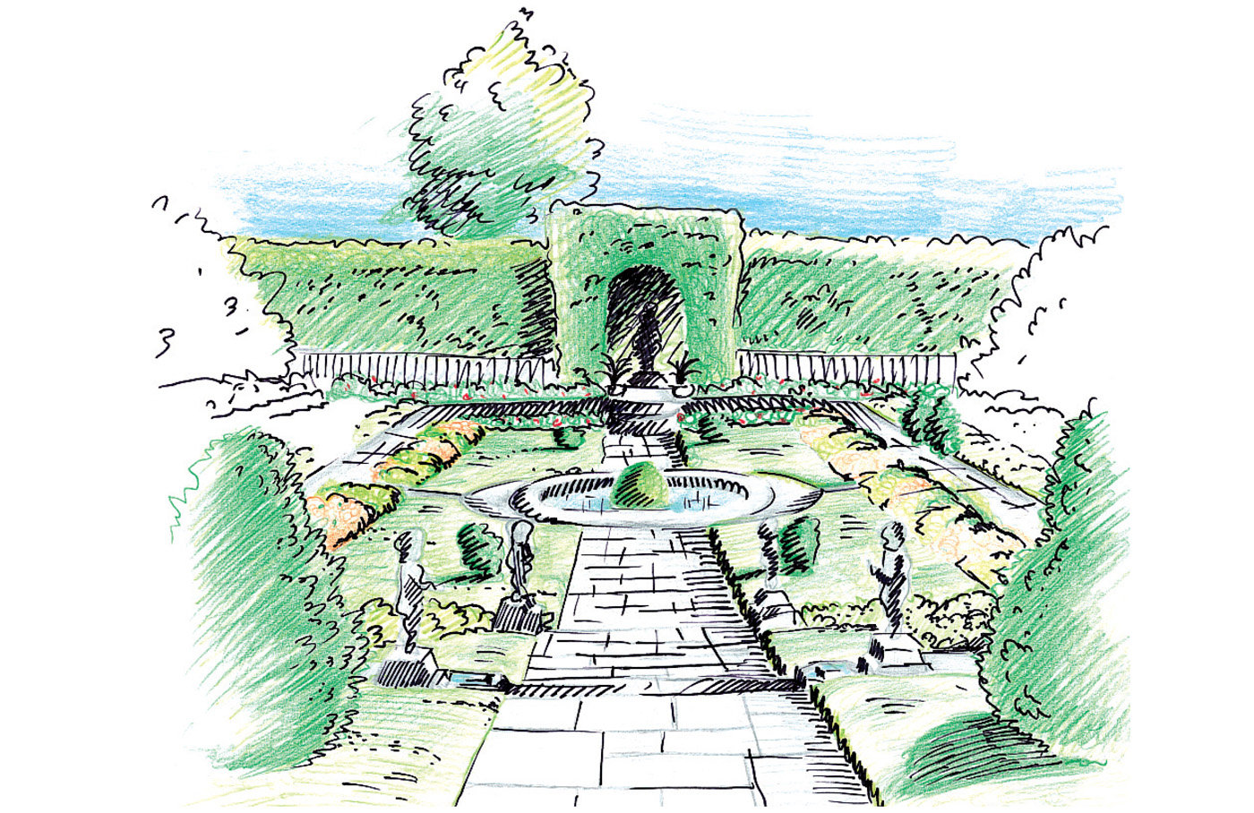 Jardín clásico de estilo italiano. (Dibujo de Damiano Groppi)