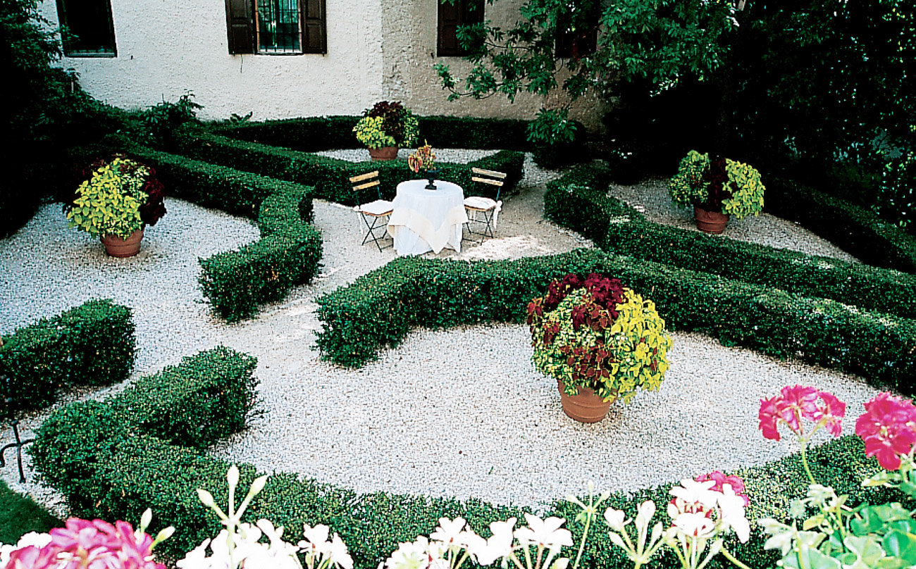 Estas rebuscadas elaboraciones requieren horas y horas de trabajo con las tijeras. Los efectos que se obtienen compensan con creces al observador, a quien le recuerdan los encajes y los bordados de los vestidos más suntuosos. La opulencia y la riqueza de estos parterres perfectamente cerrados se acompañan siempre con la música de pequeñas cascadas sobre estanques y fuentes, elementos que dan la idea de un orden alegre y ligero.