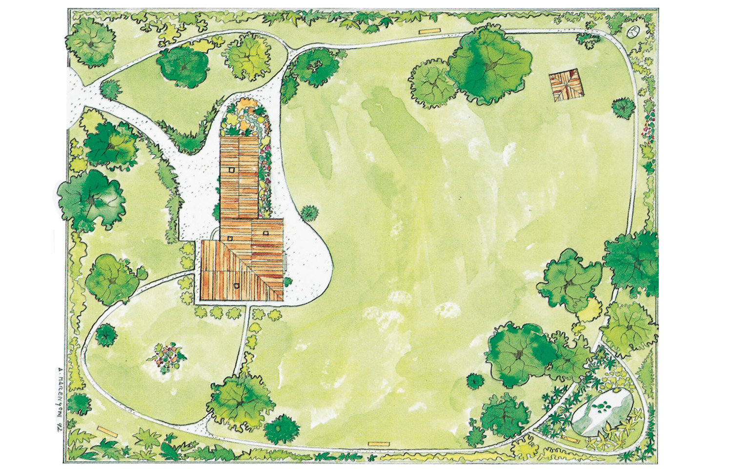 Las sendas sinuosas se adentran entre los puntos de vegetación, creando rincones ocultos y proporcionando un contacto más directo con la naturaleza. (Dibujo de Alberto Marengoni)