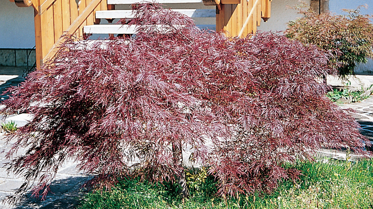 El arce rojo, al igual que otras especies de hojas de color, es una de las plantas más usadas en el jardín japonés