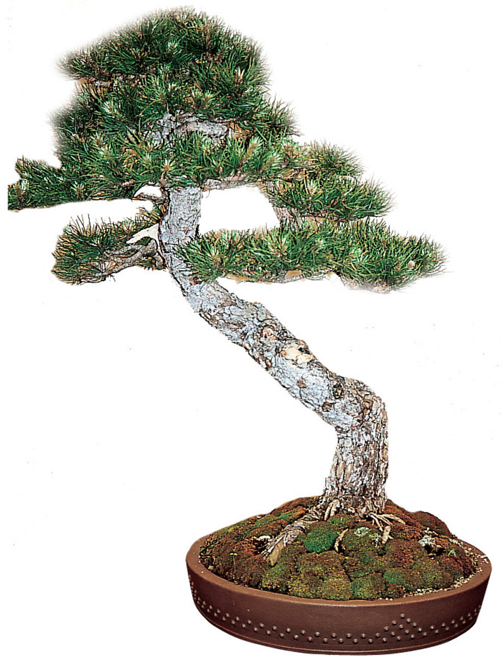 El bonsái de pino vive en el exterior. El arte de los bonsáis es de origen chino, pero ha encontrado una plena aceptación en el jardín japonés