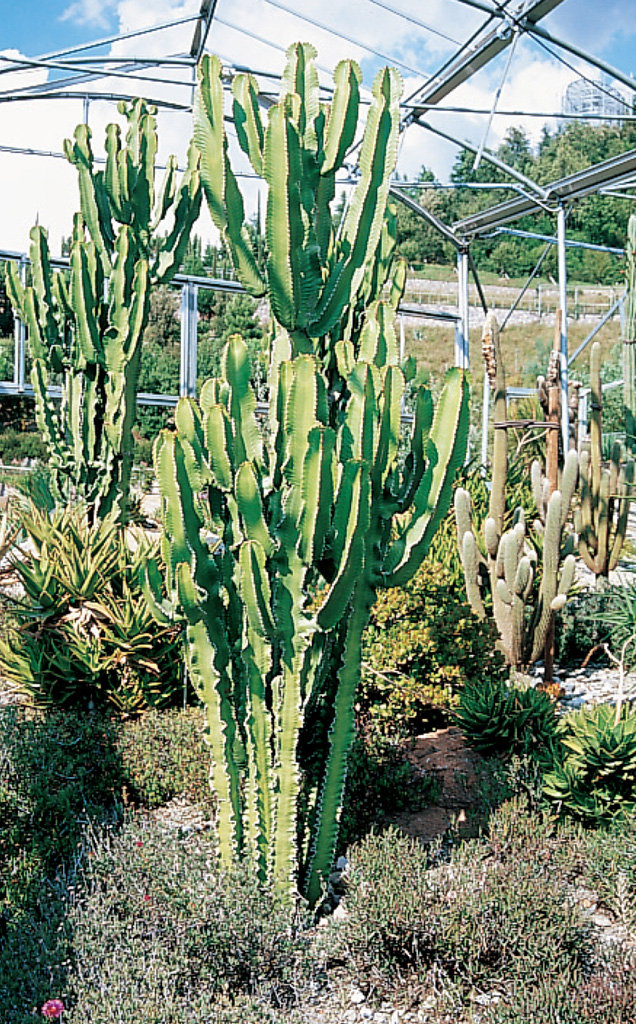 Euphorbia candelabrum. Su forma geométrica es muy adecuada para los jardines minimalistas
