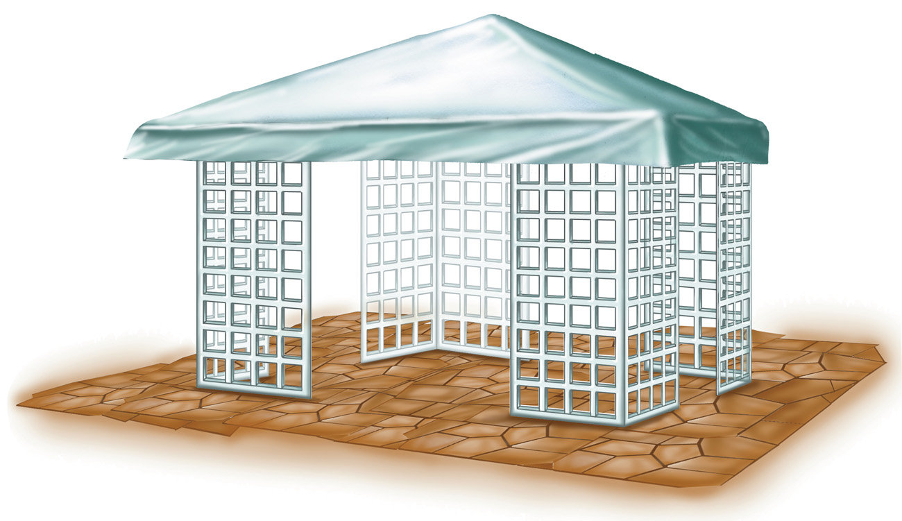 Sobre el suelo embaldosado se puede colocar una glorieta móvil con cubierta de lona impermeable