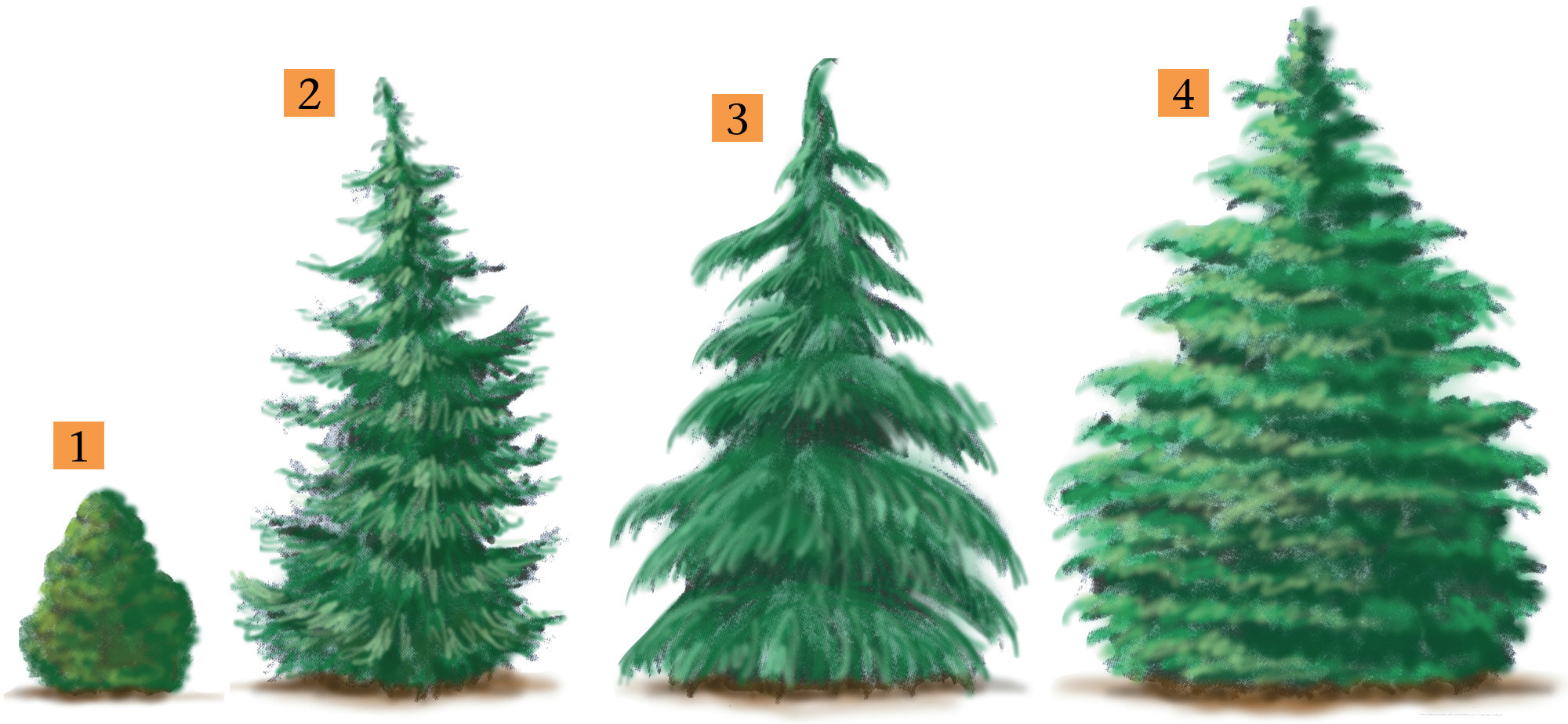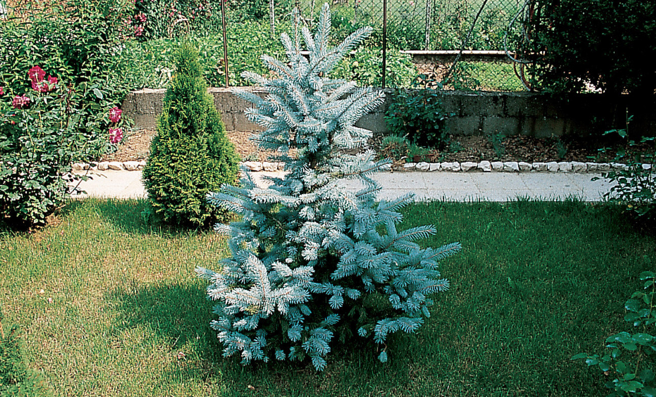 1. Chamaecyparis obtusa «Nana»; 2. Picea excelsa y Abies spp.; 3. Cedrus deodara «Aurea» y «Fitlantica»; 4. Abies concolor