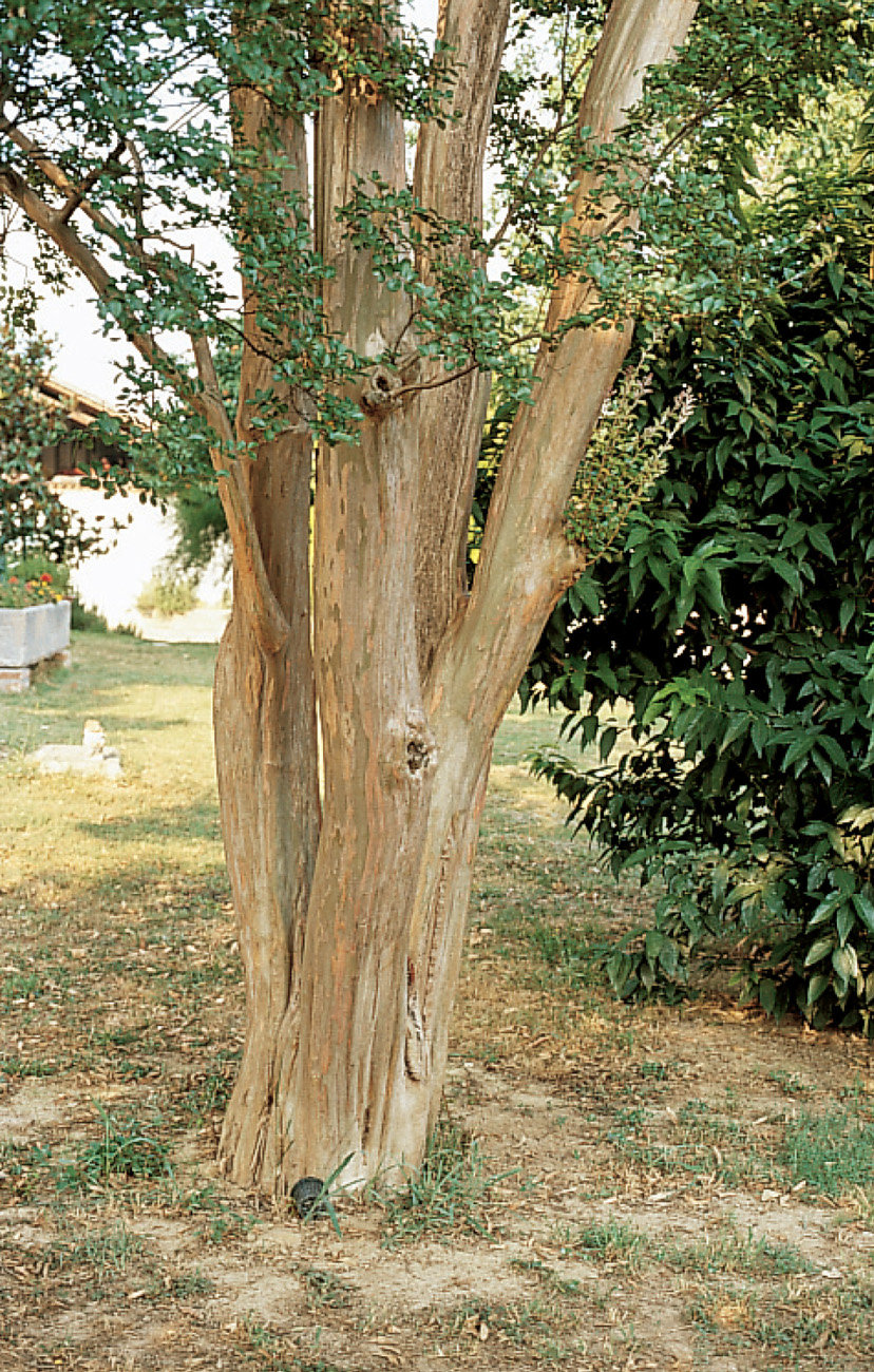 El tronco de lagerstroemia destaca, sobre todo en invierno, por su estriado rojizo