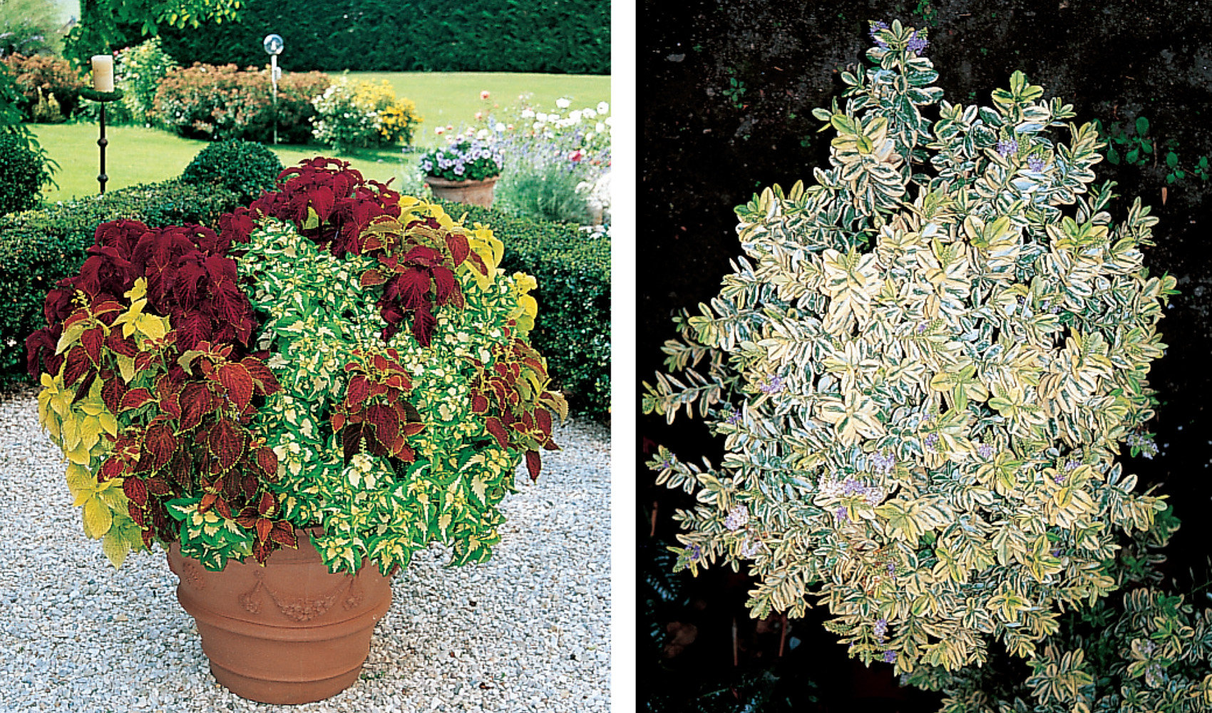 En espacios pequeños se puede colocar sobre la grava macetas con variedades de Coleus o con un solo arbusto de verónica
