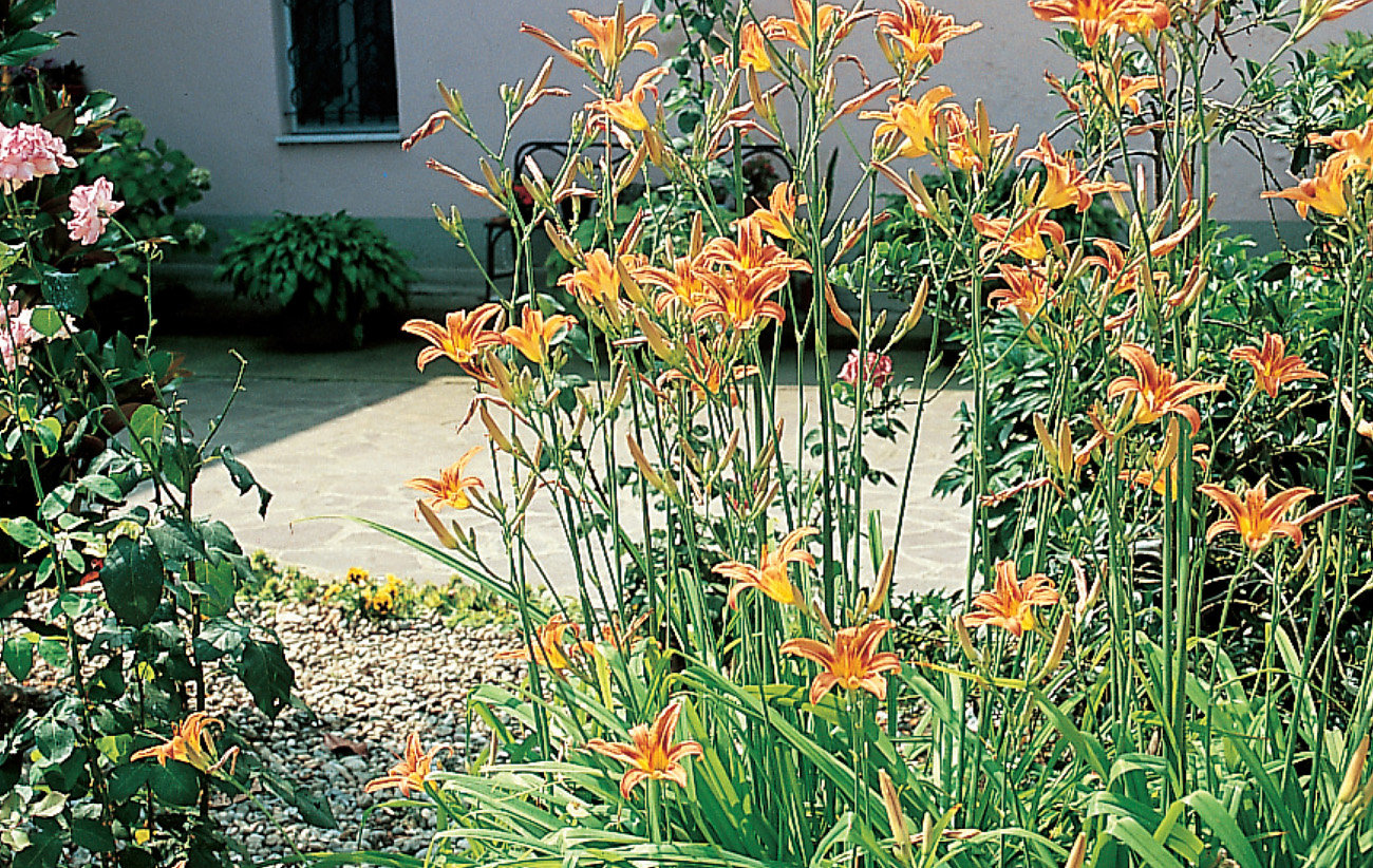 Hemerocalas y rosas colorean los cálidos veranos de las llanuras