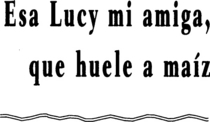 Y cuando nos miramos a los ojos, nuestros brazos pegajosos por la paleta gemela de naranja que compartimos, podríamos ser hermanas, ¿verdad? Podríamos ser, tú y yo esperando a que se caiga un diente y el ratón con el dinero. Tú estás riendo algo en mi oído que me hace cosquillas y yo hago Ja Ja Ja Ja. Yo y ella, esa Lucy mi amiga, que huele a maíz.