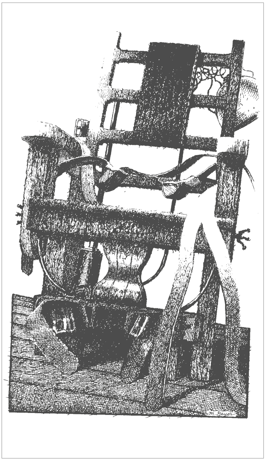 Los internos hacían chistes sobre la silla; la gente siempre hace bromas acerca de las cosas que le asustan pero no puede controlar. La llamaban la Freidora o la Gran Licuadora. Bromeaban sobre la cuenta de la luz o la posibilidad de que el alcaide Moores preparase allí la comida del día de Acción de Gracias, ya que su esposa, Melinda, estaba demasiado enferma para cocinar.