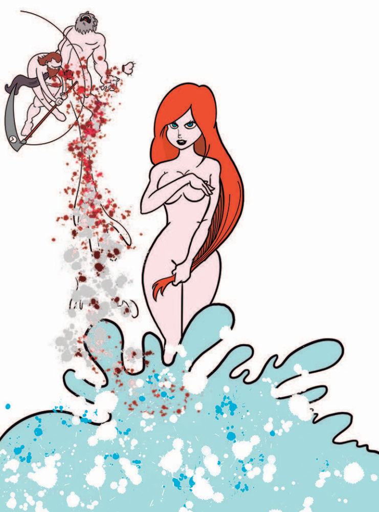 El propio nombre de Afrodita viene de aphros (‘espuma’), ya que nació de la espuma que provocó Urano cuando su semen cayó al mar después de que su hijo Cronos le cortara el carné de padre con una hoz.