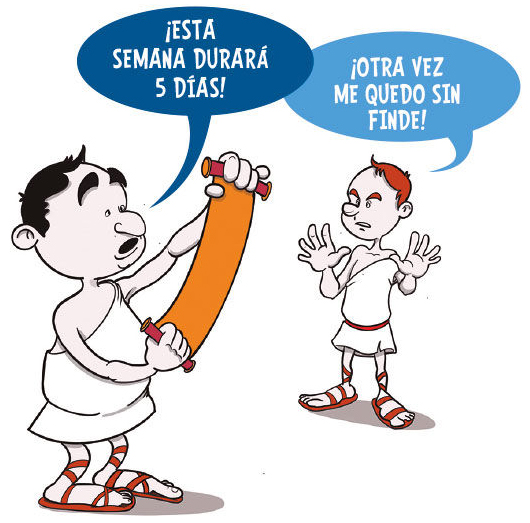 Como te decía, al primer día del mes lo llamaban calendas, y de ahí la palabra «calendario». Este día tenía la particularidad de que debía salir un encargado a decir cuánto iba a durar la semana porque las semanas podían durar ¡entre cuatro y nueve días!