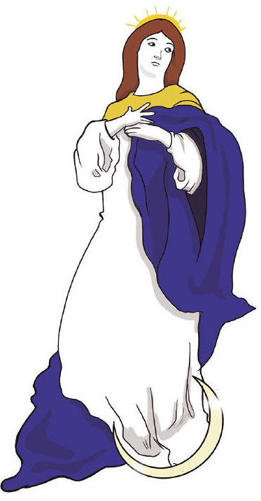 WTF? Si te fijas en los cuadros de la Virgen María y en las imágenes de las procesiones, verás que en muchos se la representa subida encima de una media luna. Esto, que parece una chifladura, tiene su explicación: es una manera velada de decir que el cristianismo se ha impuesto sobre el islam. Verás también que de la cabeza de la Virgen suelen salir rayos de sol. ¡El Sol vence a la Luna!