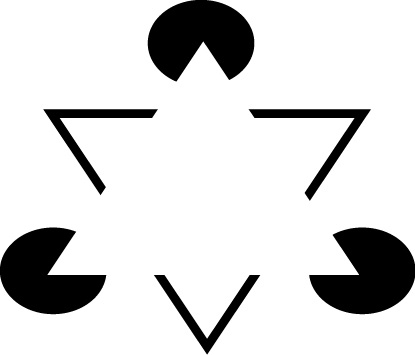 La Figura I, el conocido como efecto Kaniza, nos puede ayudar a aclarar esta idea. Mira el dibujo rápidamente y, sin pensarlo mucho, contéstate: ¿Hay realmente dibujado un triángulo?