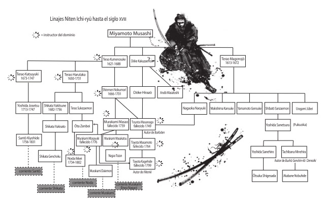 Musashi, como segundo hijo de Tabaru Iseda, fue dado en adopción a Miyamoto (Shinmen) Munisai. Con esta decisión, al menos una persona del linaje Tabaru conservaría el estatus de samurái, lo que era un gran motivo de orgullo. Fue un arreglo lógico teniendo en cuenta que los enmarañados orígenes de la genealogía Akamatsu los conectaban a todos de una u otra forma.20 A lo largo de su vida, Musashi solía referirse a sí mismo con el nombre de Miyamoto. Sin embargo, en Gorin-no-sho firma como Shinmen Musashi Genshin, quizá como una referencia a sus ancestros. También se rumorea que en su lecho de muerte pidió a su alumno Terao Kumenosuke que legara el nombre Shinmen a aquel discípulo de la Niten Ichi-ryū que demostrase un talento extraordinario.