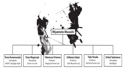 Musashi fundó la escuela Enmei-ryū en 1605. Esta primera escuela siguió abierta incluso después de que Musashi rebautizara su estilo de combate como Nitō Ichi-ryū y, por último, como Niten Ichi-ryū. La Enmei-ryū había ganado muchos adeptos en los dominios de Himeji, Tatsuno, Hiroshima y Owari, donde Musashi vivió durante una temporada. Tada Yorisuke fue uno de los primeros alumnos célebres de la Enmei-ryū, donde estudió bajo la tutela del maestro desde 1615 a 1624. Entre los numerosos alumnos de la primera escuela de Musashi, cabe destacar a Aoki Jōeimon, un extraordinario espadachín que más adelante fundaría la Tetsujin-ryū en Edo, de la que se dice que llegó a reunir a casi nueve mil alumnos.40