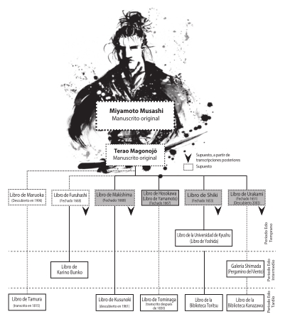 Una gran parte de lo que sabemos hoy en día sobre Musashi se basa en conjeturas más o menos fundamentadas. El manuscrito original de Gorin-no-sho, por ejemplo, no se ha encontrado nunca. Estamos obligados, por lo tanto, a depender de copias manuscritas posteriores y copias de copias, que incluyen muchas incoherencias. Ni siquiera los expertos se ponen de acuerdo a la hora de afirmar que Musashi es el verdadero autor de Gorin-no-sho. Hay quien sostiene que lo escribió uno de los alumnos de Musashi después de su muerte, y que el discípulo se habría limitado a firmar el manuscrito con el nombre de su maestro. Sin embargo, las pruebas señalan de forma irrefutable que Musashi sí escribió Gorin-no-sho. En mi interior, yo no albergo la menor duda.