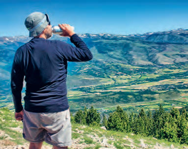 Es más importante hidratarse convenientemente que tomar comida sólida. Un buen truco es detenerse tras cada hora de caminata para dar un breve trago a la cantimplora. Estratégicamente, trataremos de no agotar nunca nuestra carga de agua hasta que hayamos llegado a un punto en el que rellenar la botella. Es mejor ir dando sorbitos y garantizar que siempre nos queda algo de líquido. En temporada veraniega por terrenos muy expuestos, cargar con dos litros de agua por persona no es exagerado. Además, llevamos menos equipo de abrigo, por lo que podemos permitirnos un poco más de peso con algo tan vital como el agua.