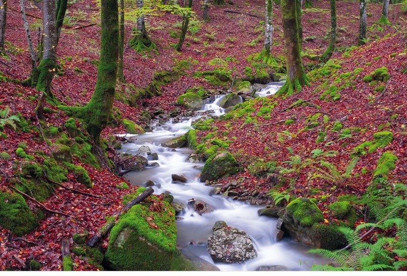 Los desfiladeros de Las Merindades, comarca burgalesa de personalidad misteriosa, velada por el ambiente turbador de los bosques, suponen la frontera natural entre la cordillera Cantábrica y el valle del Ebro. Nueve etapas permiten recuperar la memoria medieval alzada en los riscos u oculta entre castaños y robles, que forman galerías encantadoras al arrullo del gran río. Su energía ha abierto paso entre las montañas, creando estampas fantásticas y apacibles instantes de satisfacción rural entre vestigios romanos y hayedos centenarios.