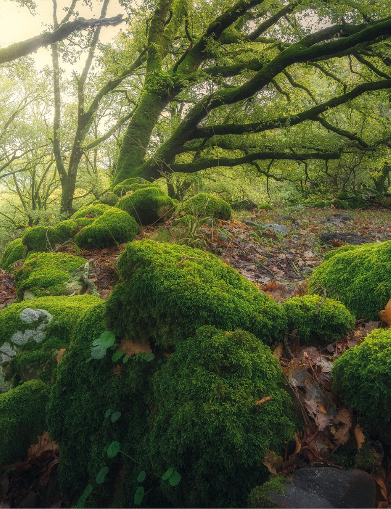 Resistente huella de otros tiempos, las selvas de laurisilva del Parque Natural de los Alcornocales, envueltas en nieblas permanentes, sirven de escenario para un paseo de halo mágico entre vegetación exuberante. Se respira fascinación por los ambientes enigmáticos, por un camino que fue cuna del bandolerismo andaluz y que lleva hasta la misma cumbre del pico del Aljibe, desde donde asomarse al estrecho de Gibraltar y otear los primeros montes de Marruecos.