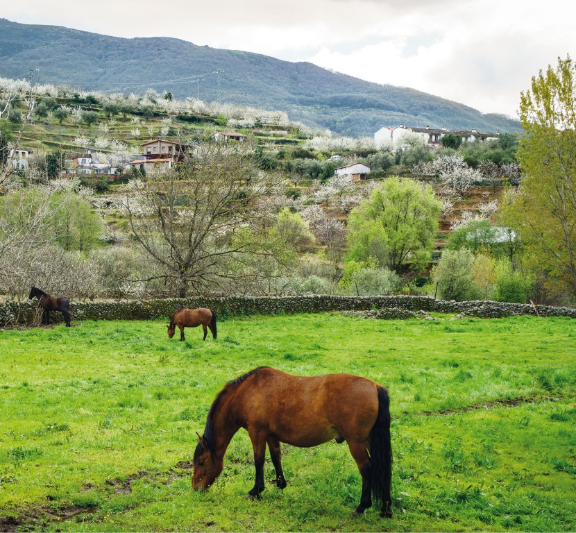 Bajo el dominio masivo del macizo de Gredos florece el valle del Jerte. Los miles de cerezos en flor y sus fulgurantes cascadas son un reclamo habitual para el visitante, y la puerta de entrada para conocer las cicatrices dejadas por el agua en sus escarpadas siluetas. Esta ruta, ideal para jornadas veraniegas con bañador en la mochila, lleva tras los pasos de Carlos V hacia su retiro en Yuste, a través de robledales y gargantas hasta llegar a los Pilones, una decena de pozas naturales tan refrescantes como fotogénicas.
