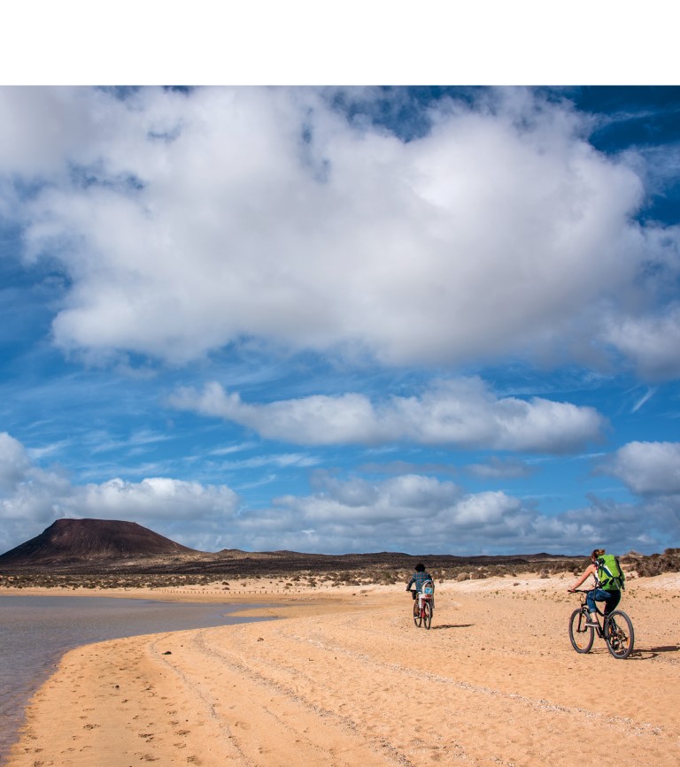 Los 250 km y 3500 m de desnivel positivo por los relieves volcánicos de Lanzarote constituyen una súper ruta en bicicleta de montaña. Una línea imaginaria rodea la isla por completo, a negociar en al menos cuatro jornadas, desde la sabrosa costa de Teguise hasta Puerto del Carmen, por entornos de soledad y quietud, donde el rumor del viento es la única señal del paso del tiempo.