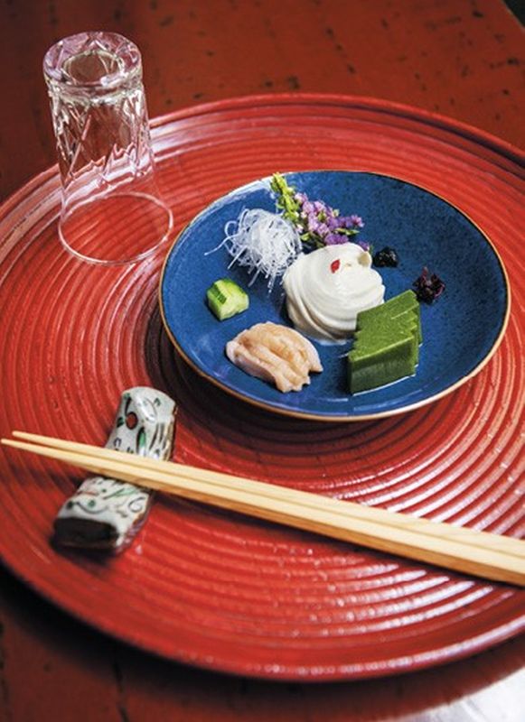Mientras que las cocinas occidentales, con sus fuertes aderezos y salsas características, suelen atraer inicialmente el sentido del olfato, la cocina japonesa es sobre todo visual. Esto se aplica a todas las comidas, desde las humildes cantinas shokudō hasta la kaiseki ryōtei de altos vuelos. El verbo yosou (“disfrazar” o “adornar”) describe la presentación de la comida. Es esencial armonizar color, forma y textura, y dar la consideración debida a cada elemento: desde la propia comida hasta el color de la guarnición y la forma del cuenco en que se sirve el manjar. Y por supuesto, en la mejor tradición zen, debe haber espacio o ma, ese elemento que se deja siempre a la imaginación; por eso los platos de kaiseki nunca se llenan del todo.