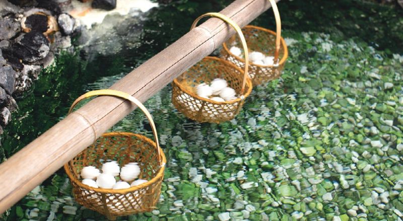 Onsen-tamago, huevos cocidos en agua de manantial termal.