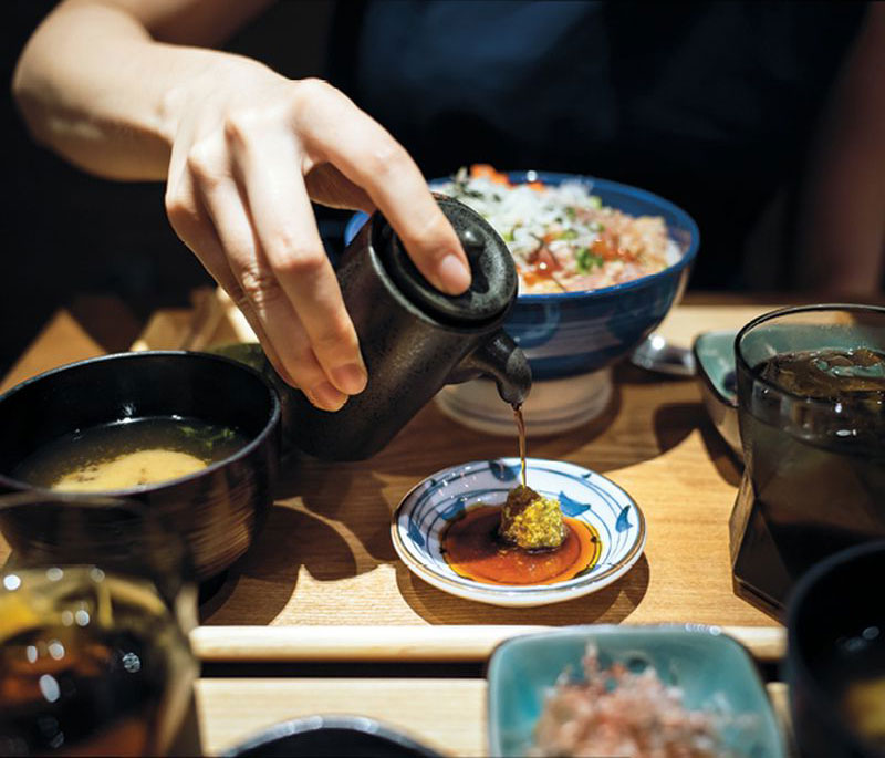 Las comidas japonesas no se parecen a las occidentales ni en su sabor ni en su aspecto. Suelen consistir en varios platos pequeños y separados que se sirven a la vez en una bandeja lacada o una mesa; la sopa miso y el arroz vienen después. Y siempre hay arroz. Por la ausencia de salsas espectaculares de estilo francés o embriagadoras especias tipo indio, la cocina japonesa puede parecer, a primera vista, bastante insulsa. En realidad, esto refleja el modo en que los japoneses perciben la comida y, por extensión, los condimentos. Los japoneses clasifican la mayoría de los platos occidentales de seiyo-ryōri o yō shoku como tashizan-ryōri, es decir, una cocina que se crea añadiendo condimentos y mezclando sabores. Por el contrario, la mayoría de los platos japoneses de nihon-ryōri o washoku entran en la categoría de hikizan-ryōri, en la que los condimentos naturales de cualquier ingrediente deben ser ingeniosamente “extraídos” por el chef. Solo en el último momento debe añadirse, tal vez, un toque cítrico de yuzu o de pimienta sanshō, pero esto siempre servirá de complemento y realce de los sabores naturales. Puede que cueste un poco adaptarse a estas sutilezas, pero, cuando se logre, uno se vuelve un converso.