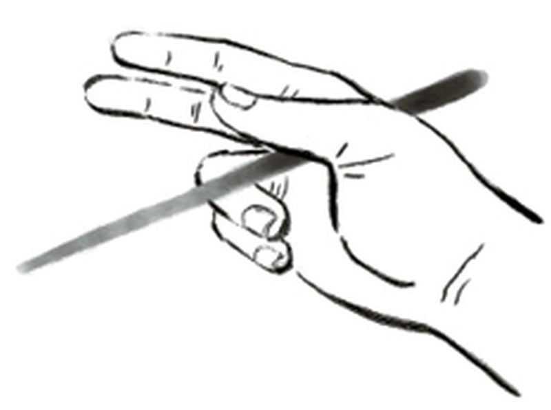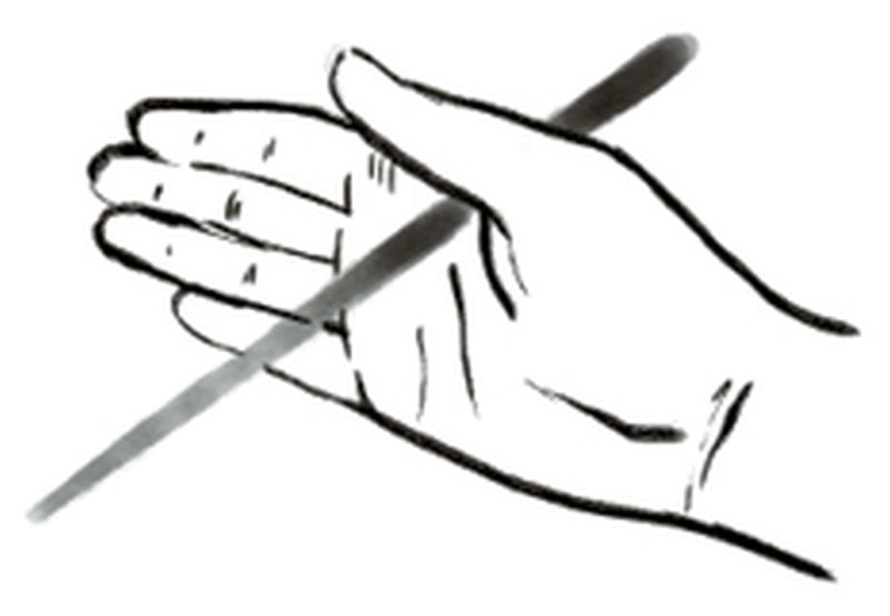 Apoyar un palillo sobre la palma en el espacio entre pulgar e índice y pegar el pulgar a la palma.