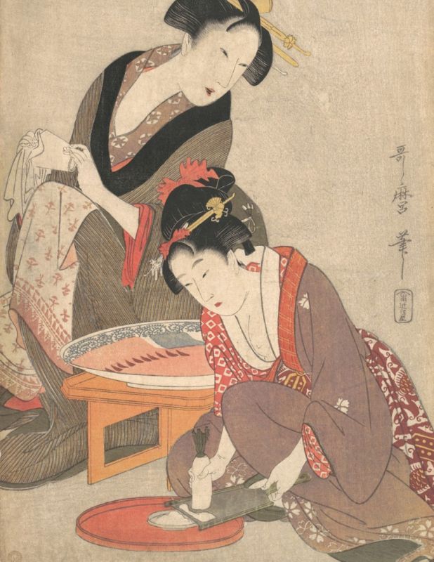 Mujeres en una cocina, siglo XVIII, por Kitagawa Utamaro.