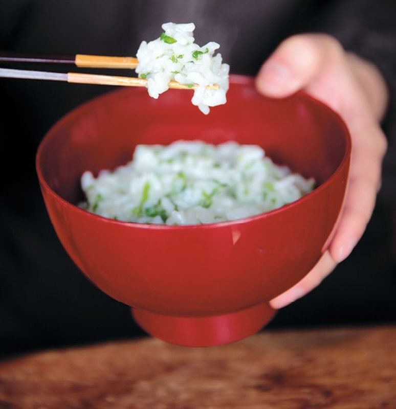 Cuenco de nanakusa-gayu (sopa de arroz con siete hierbas).