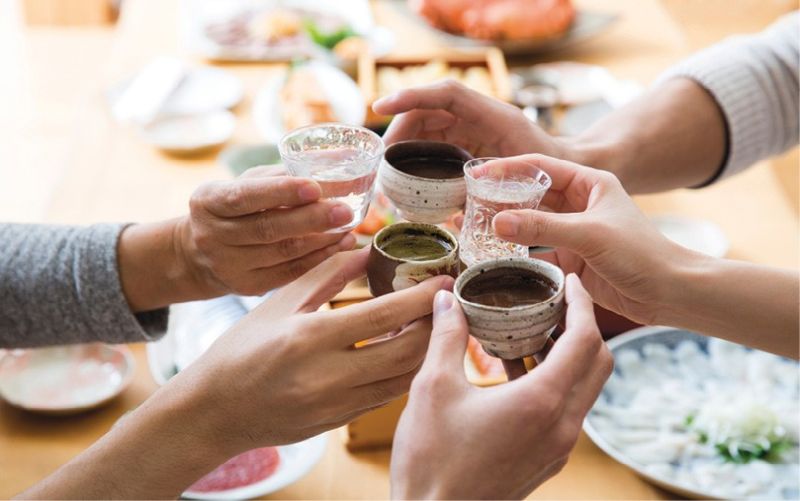 Se brinda con sake en ocasiones señaladas, como las bodas.